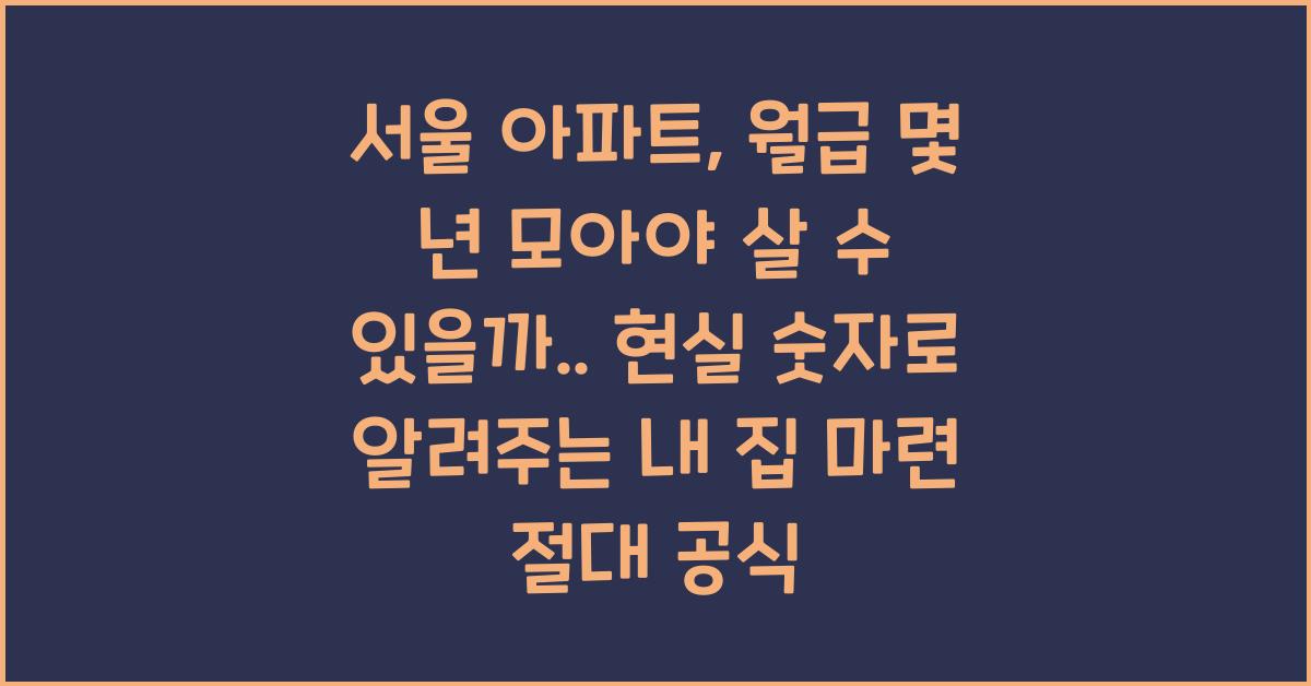 서울 아파트, 월급 몇 년 모아야 살 수 있을까? 현실 숫자로 알려주는 내 집 마련 절대 공식