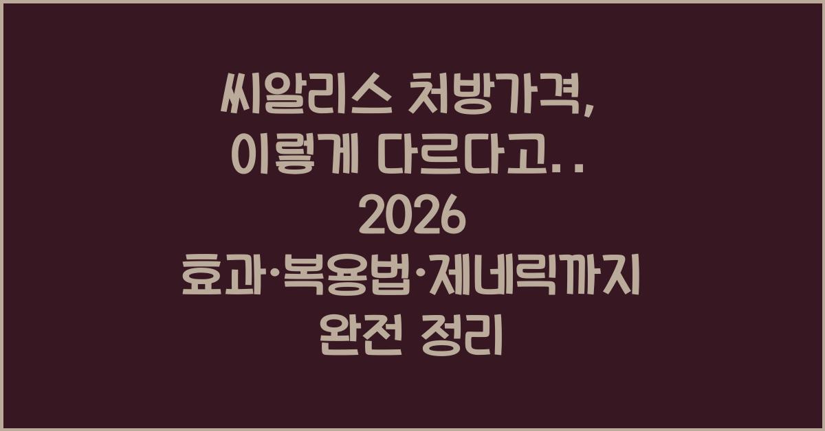 씨알리스 처방가격, 이렇게 다르다고? 2026 효과·복용법·제네릭까지 완전 정리