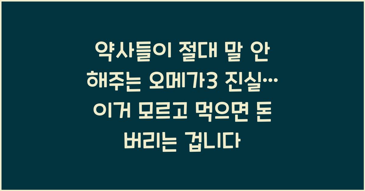 오메가3, 많은 분들이 건강을 위해 챙겨 드시지만 막상 어떤 제품을 골라야 하는지 헷갈리셨던 적 있으시죠? 약국에 가도 브랜드는 많고, 인터넷에선 더 다양한 제품들이 쏟아져 나오니 오히려 선택이 더 어려워질 때가 있습니다. 2025년 기준으로 오메가3 시장은 더욱 커졌고, 제품의 질도 천차만별이기 때문에 알고 고르는 것이 무엇보다 중요해졌습니다. 오늘은 **약사들이 잘 말해주지 않는 진짜 핵심 포인트**를 부드럽고 친절하게 하나씩 풀어드릴게요. 천천히 읽어보면서 여러분의 몸에 딱 맞는 오메가3를 선택하는 데 도움 얻어가시길 바랍니다.