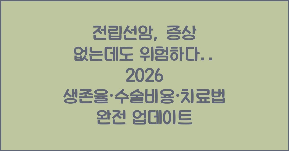전립선암은 2026년 현재, 국내 남성에게 꾸준히 증가하는 주요 암 중 하나로 자리 잡았습니다. 특히 초기에는 거의 증상이 없어 조기 발견이 어려운 반면, 조기 진단만 이루어진다면 치료 성적과 생존율이 매우 높다는 특징을 가지고 있어요. 그렇다 보니 “증상은 무엇인지?”, “병기별 생존율은 어떻게 다른지?”, “수술은 로봇으로 해야 하는지?”, “비용은 어느 정도인지?” 이런 현실적인 부분들이 가장 궁금한 정보가 됩니다. 이 글에서는 전립선암을 처음 접하는 분들도 쉽게 이해할 수 있도록 증상부터 최신 생존율, 수술방법 비교, 비용까지 한 번에 정리해드릴게요. 조금 예민하고 낯선 주제일 수 있지만, 실제로는 많은 남성이 경험하고 있는 질환이니 부담 갖지 말고 편하게 읽어보세요.