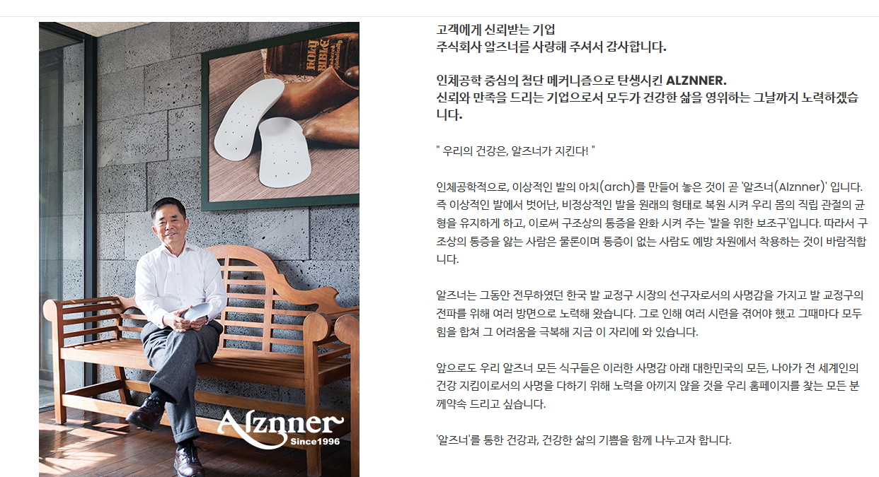 알즈너는 단순한 제품이 아닙니다. 오랜 연구와 기술이 결합된, 신뢰할 수 있는 발 건강 솔루션입니다. 지금 알즈너의 맞춤형 발 교정구를 경험해 보세요!